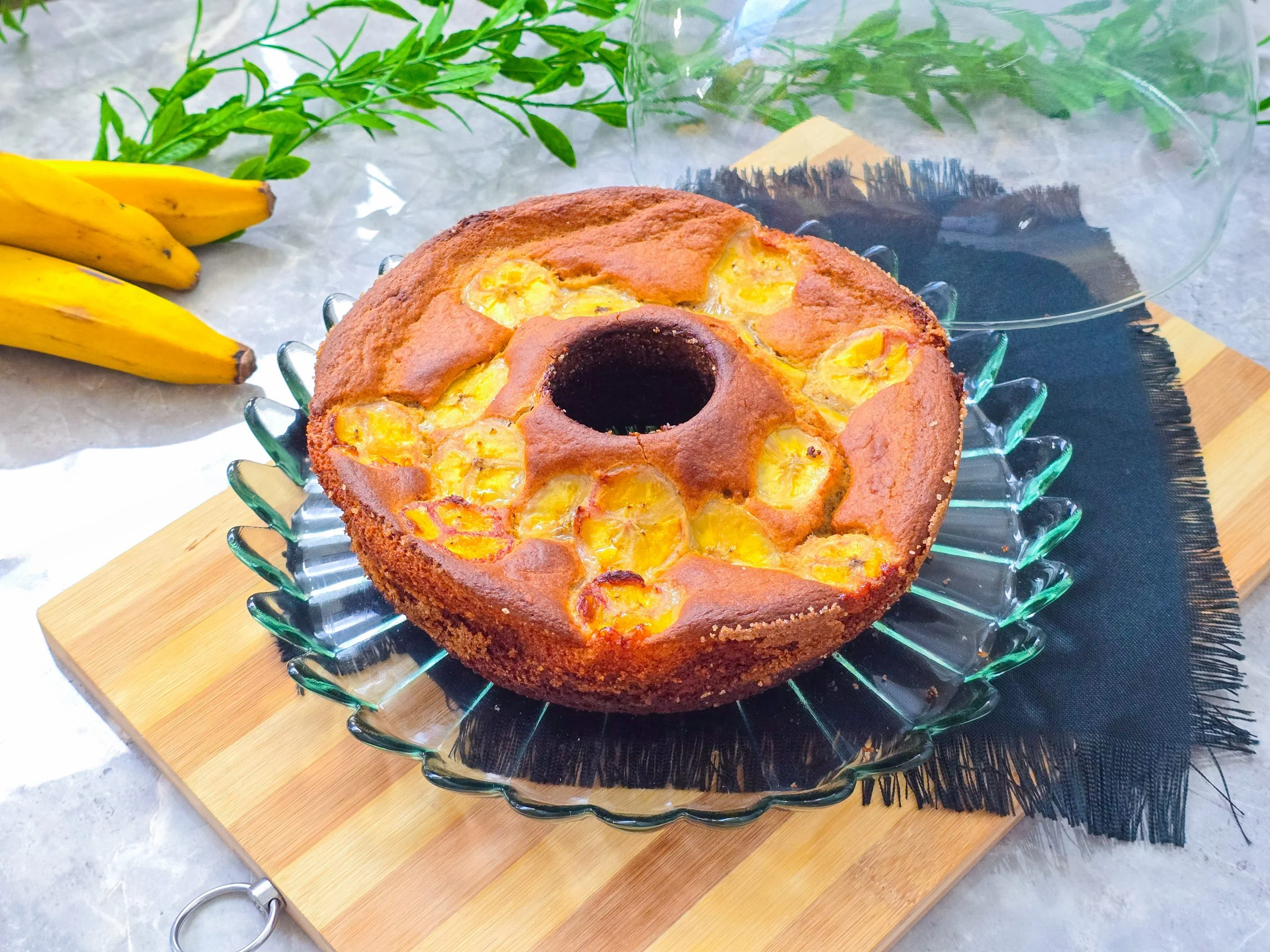 Bolo de banana preparado em forma de pão, com aveia para textura, canela para aroma e rendimento reduzido, indicado para porções menores ou consumo individual.