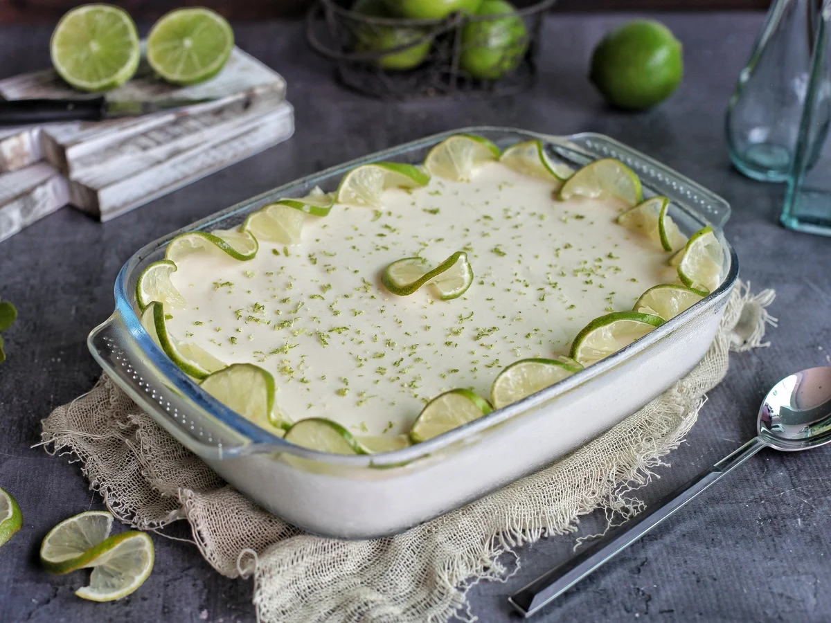O bombom de limão na travessa reúne creme aveludado com leve acidez da fruta e cobertura de chocolate branco que forma uma casquinha crocante após gelar. A preparação é simples, não vai ao forno e pode ser servida em porções individuais ou diretamente na travessa.