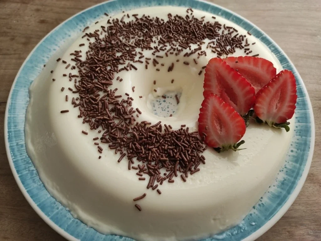 Sobremesa gelada preparada com pó de maria-mole, batida no liquidificador e levada à geladeira para firmar. O resultado é um pudim cremoso que fica pronto para servir após o resfriamento.